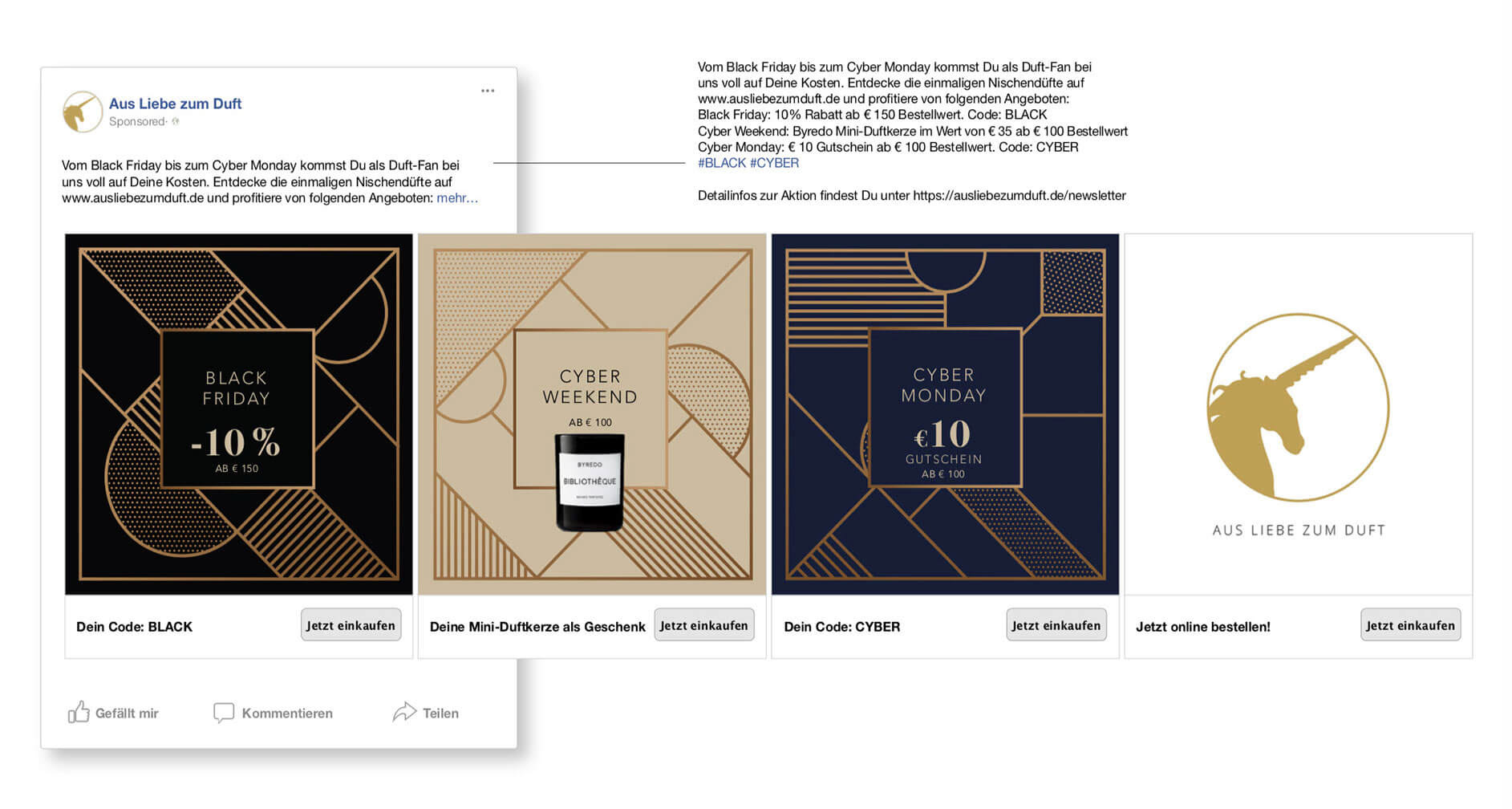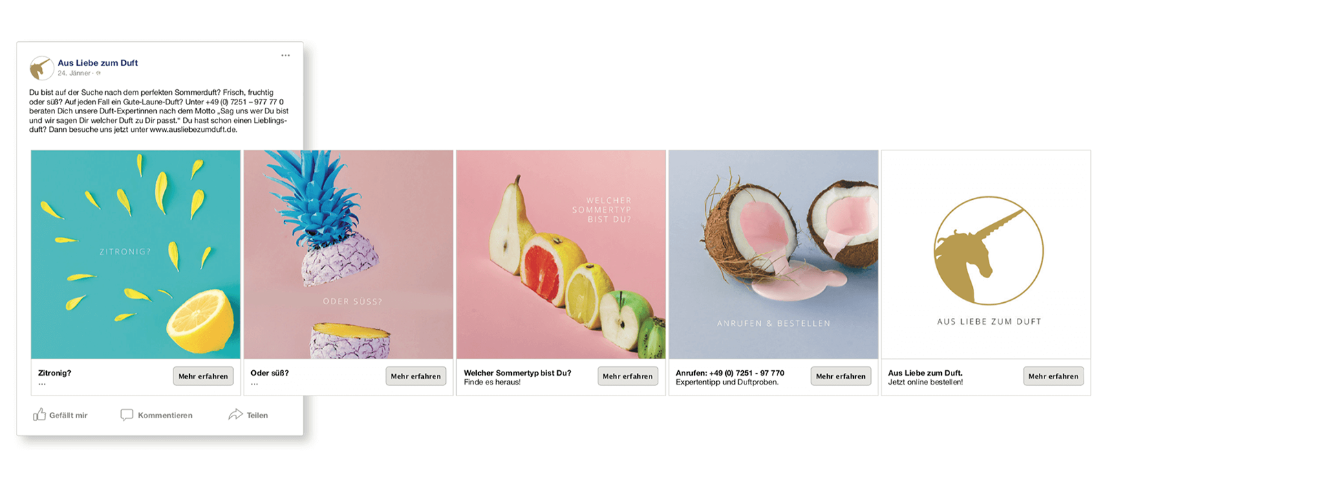 Creating a wide range of Facebook ads for Nägele&Strubells Facebook page.