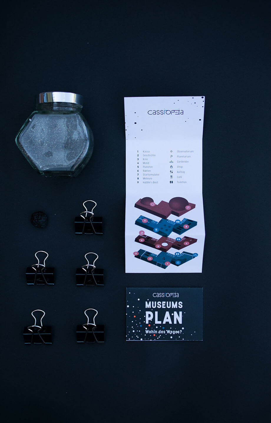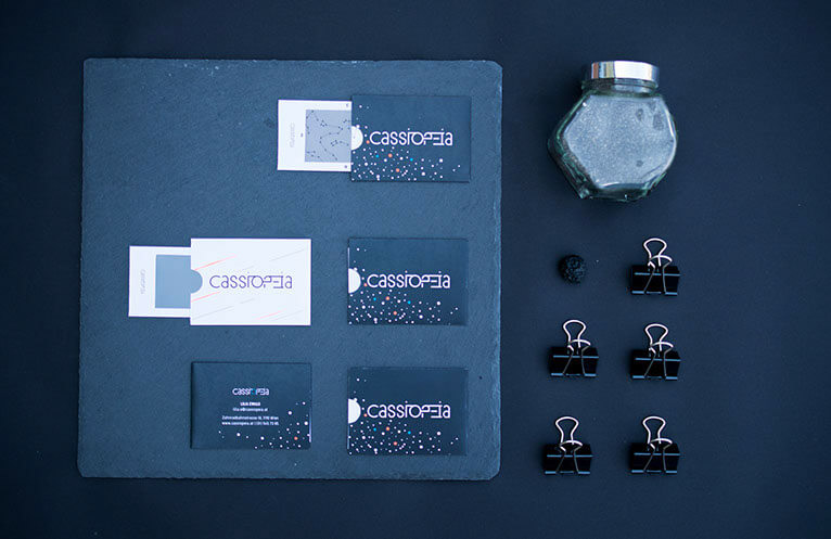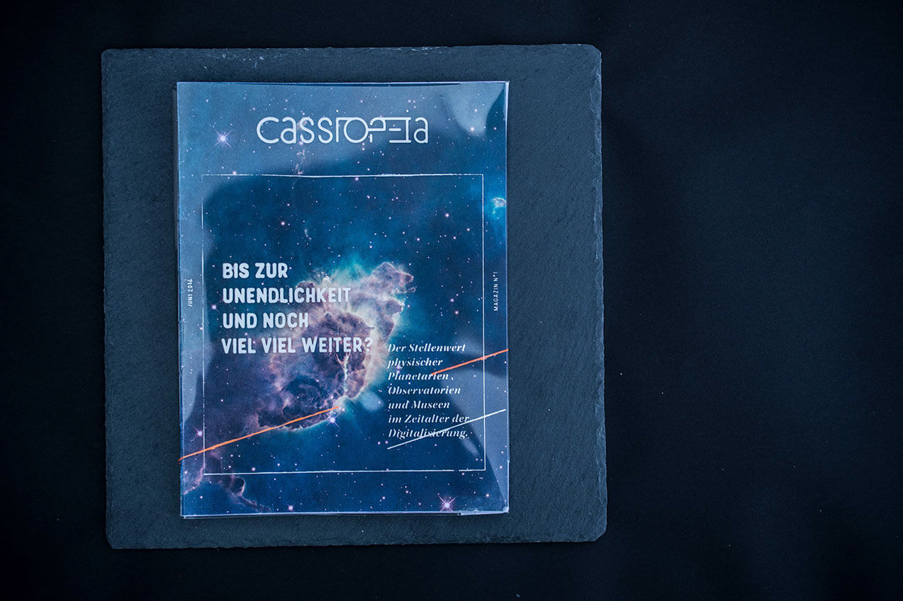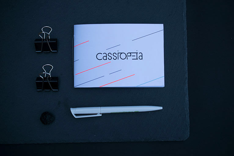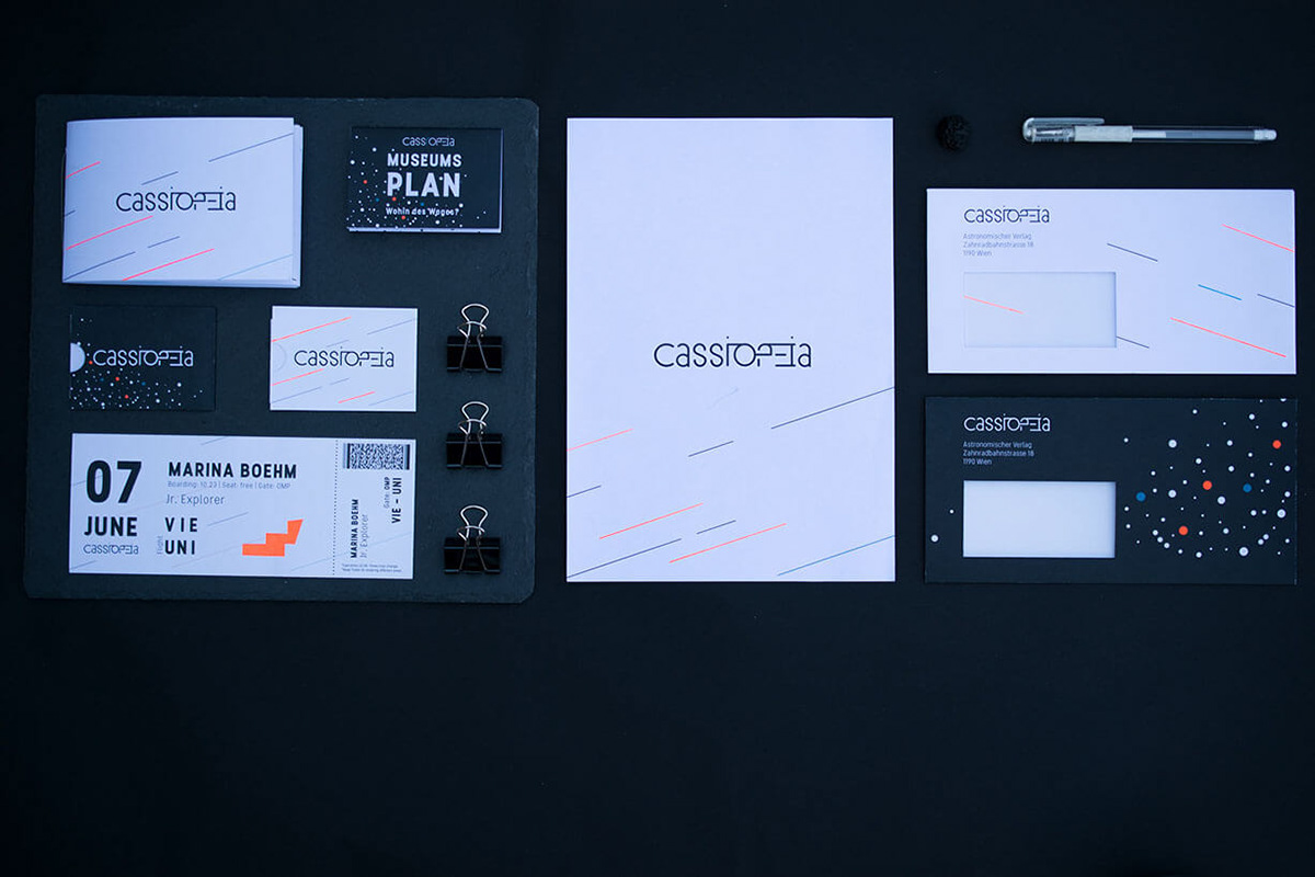 This project is about Cassiopeia, an fictive astronomic complex, which includes the following five parts: a museum, an observatory, a planetarium, a magazine and online exhibitions. The origin of the name: Cassiopeia is a constellation which consists of five Stars (like the astronomic complex) and looks like a W. Therefore it is also called sky-W.