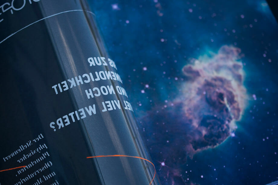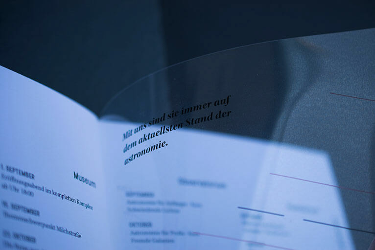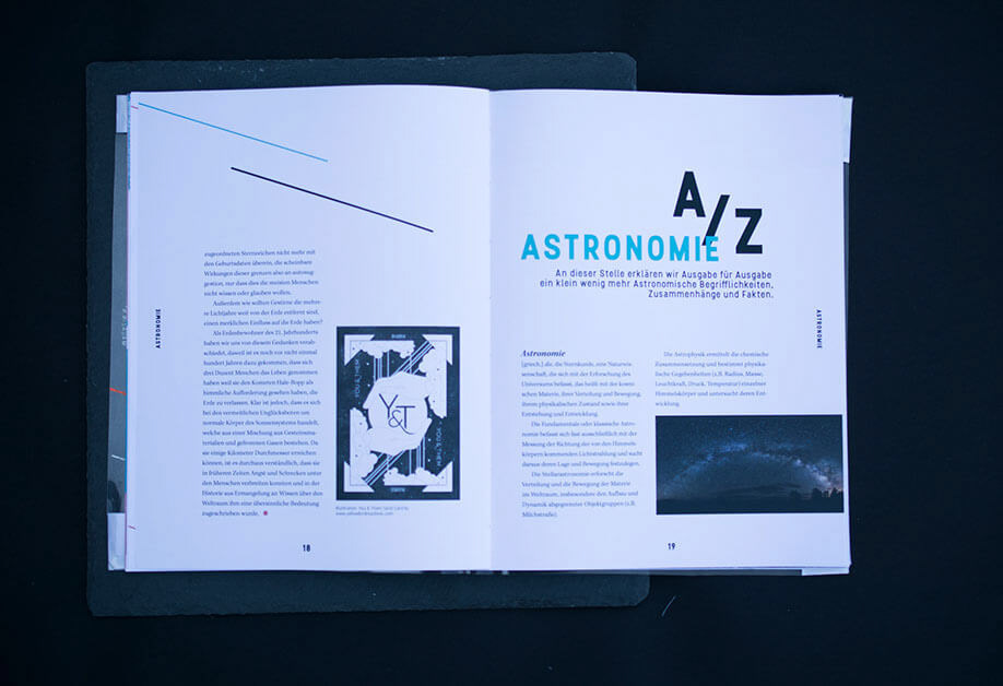 There will be a monthly issue of the Cassiopeia magazine which contains actual astronomy topics. It is about 60 pages and will be sold for € 12 to € 15. The cover design is simple, the content will be printed on a plastic foil which facilitates to printing a great astronomic picture on the paper cover without ruining it with the copy and it will also be protected by the foil.