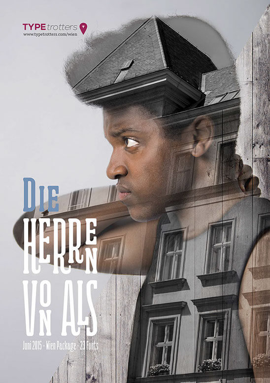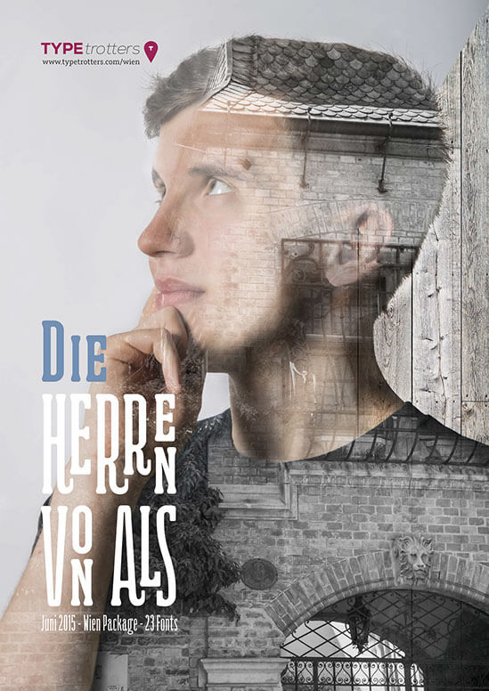 There is a fictive font seller which is specialized in selling city themed font packages. This package is about Vienna. In this case the font is influenced by the 17th district – Hernals. The name of the district comes from an old knight strain „Herren von Als“ (the men of river Als). Now the river lies underground and the district has a high immigration rate, mainly young people. I wanted to represent these young people – the modern men of Als.