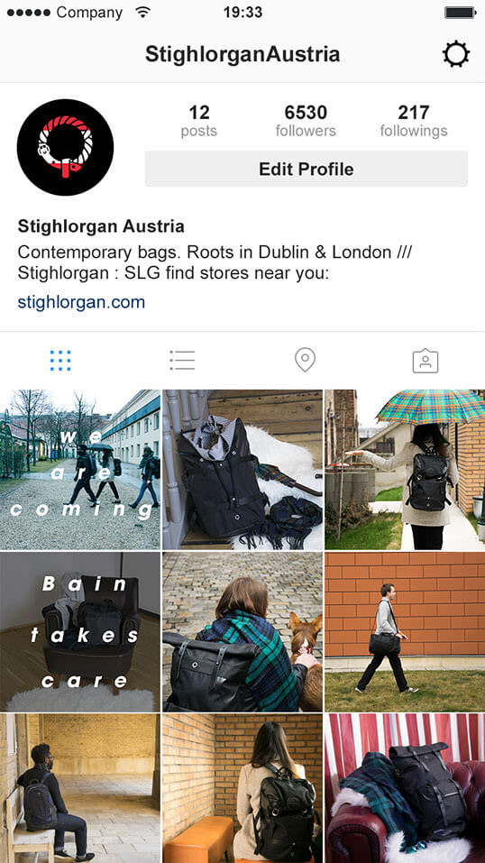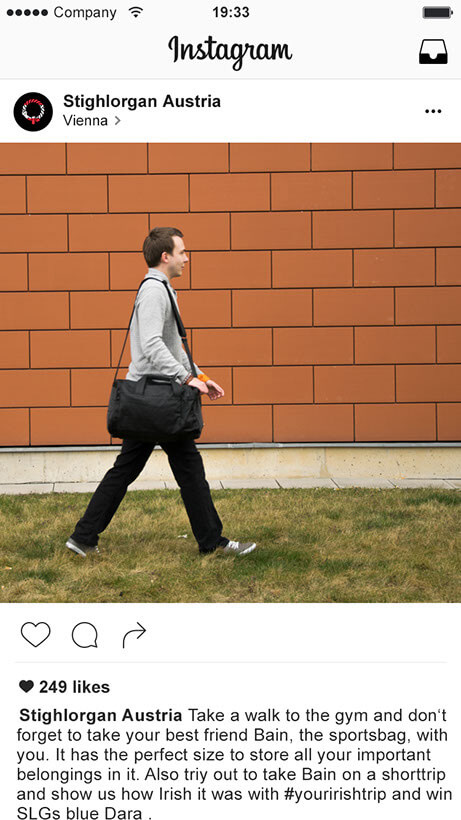 Stighlorgan is 100% Irish and is very proud of its roots, which they show in their traditional inspired bag designs.To introduce the brand to the Austrian market it only needs to bring the Irish flair to Austria and show the customers that Ireland can be anywhere round, even in Vienna, Austria.